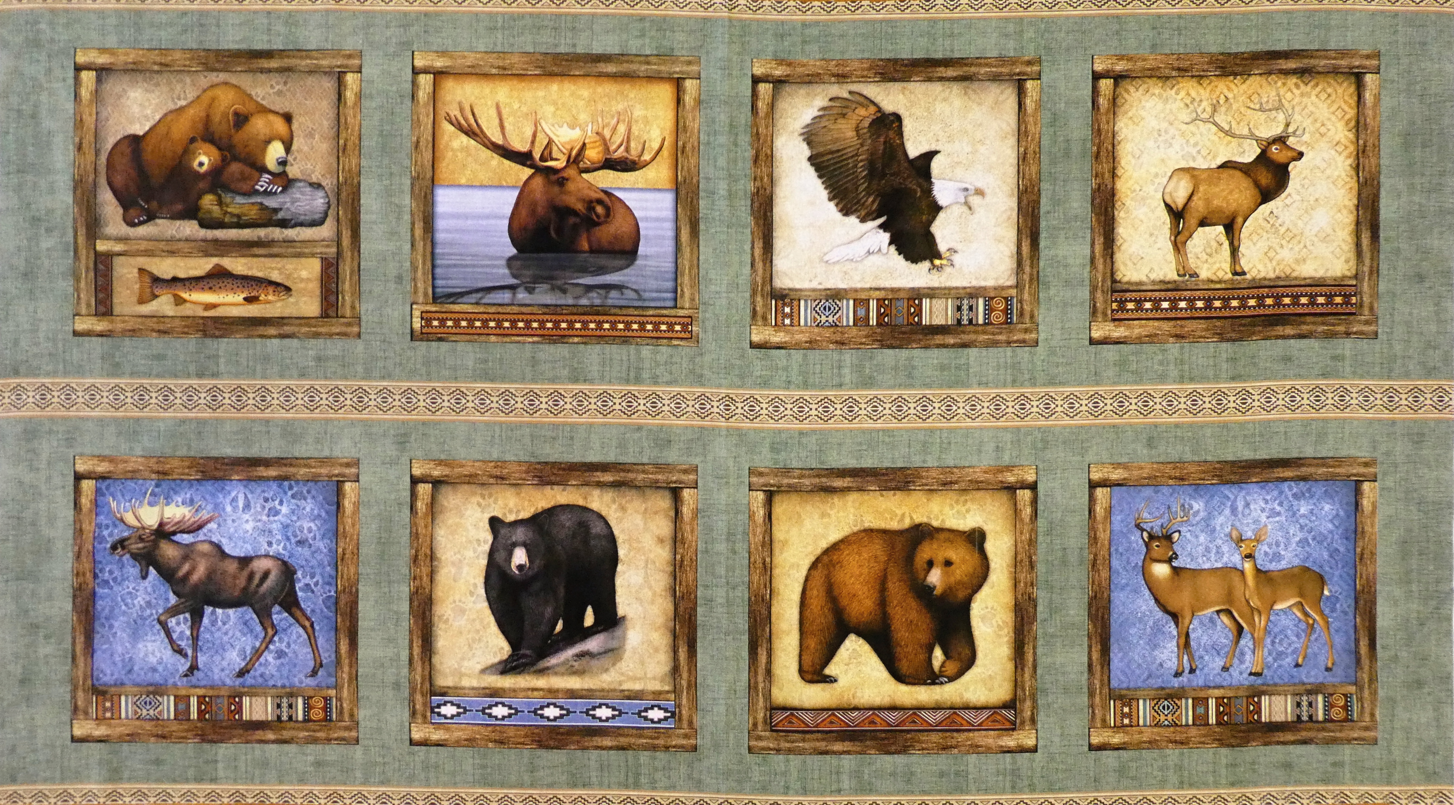 Panel - opakování po 60cm. V jedné řadě jsou 4 obrázky. Bavlněná látka s potiskem - Lesní zvířata. Vhodná na patchwork, kabelky, šití oděvů, bytových dekorací a doplňků.