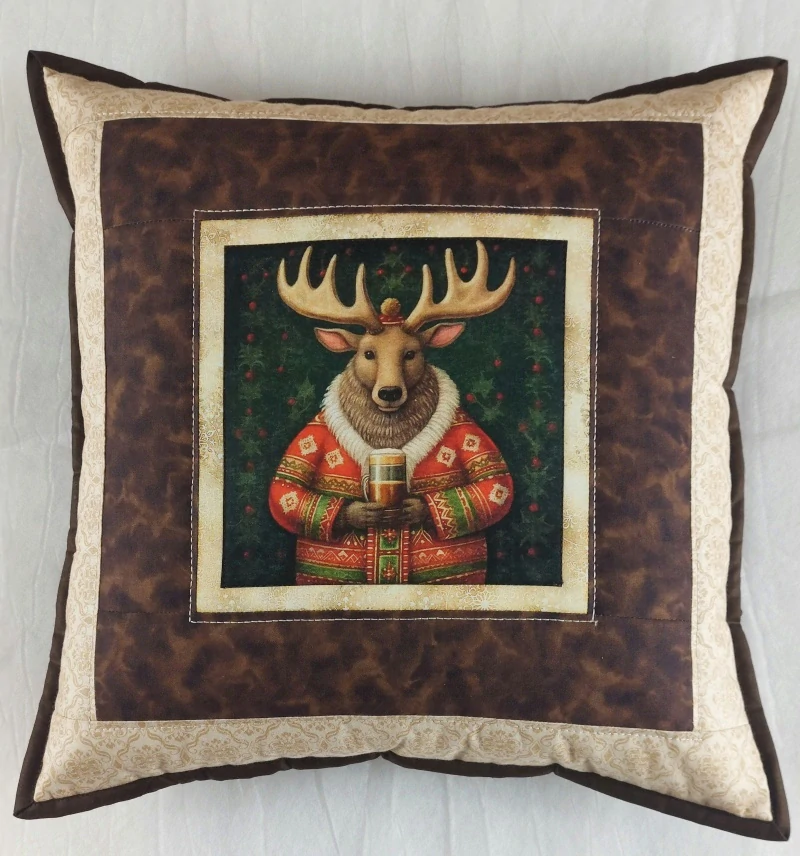Povlak na polštářek vel. 42 x 42 cm ušitý technikou patchwork V kombinaci béžové a hnědé vzorované látky. Zadní strana polštářku je tmavě hnědá s uzávěrem. Olemován je hnědou paspulkou. Prošitý ozdobným stehem.