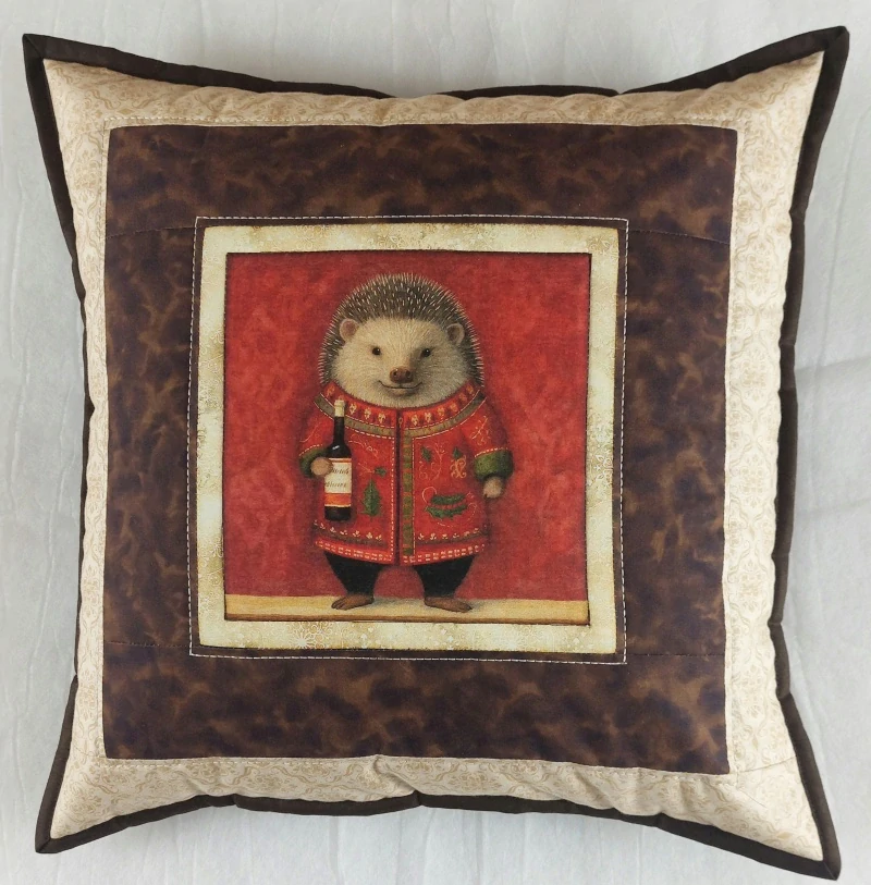 Povlak na polštářek vel. 42 x 42 cm ušitý technikou patchwork V kombinaci béžové a hnědé vzorované látky. Zadní strana polštářku je tmavě hnědá s uzávěrem. Olemován je hnědou paspulkou. Prošitý ozdobným stehem.